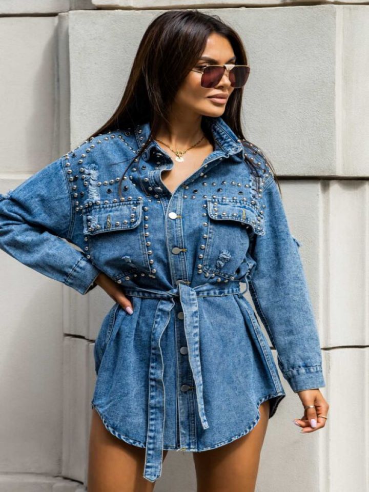 Brad Jeans Jeanshemd mit auffälligen Druckknöpfen, das in der Taille gebunden wird und die Figur perfekt betont. Ein einzigartiges Modell für Frauen, die etwas mehr als klassisch erwarten. Es wird jede Kleiderkollektion perfekt ergänzen.